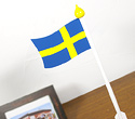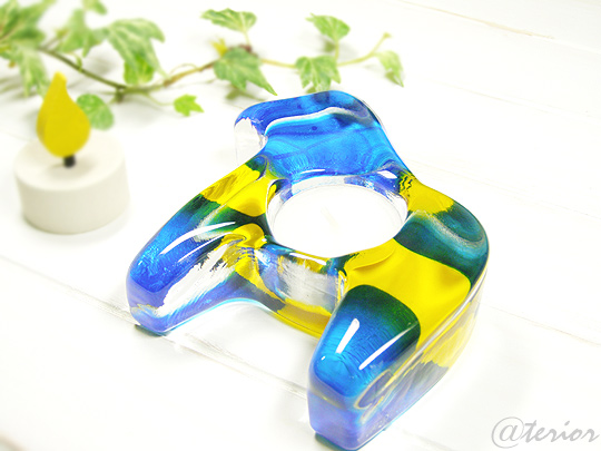裏側にライトブルーとイエローのスウェーデン国旗をデザインし、クリアーなガラスを透して映る鮮やかなカラーが目を引きます。