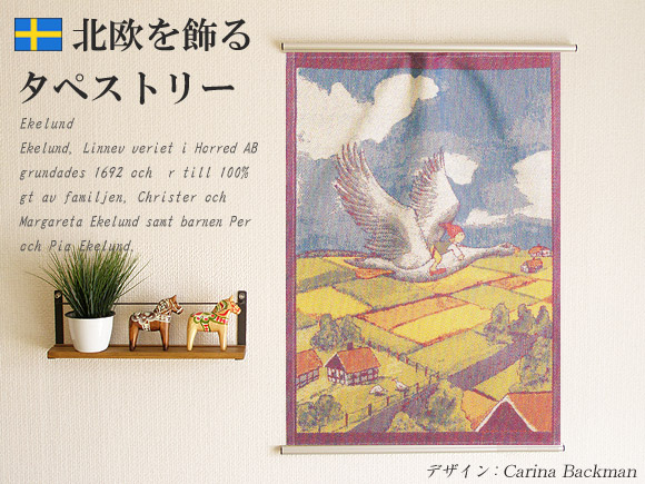 北欧雑貨のアットテリア > > Ekelund(エーケルンド)NILS ニルスの旅 タオル/北欧ファブリック/北欧テキスタイル/タペストリー