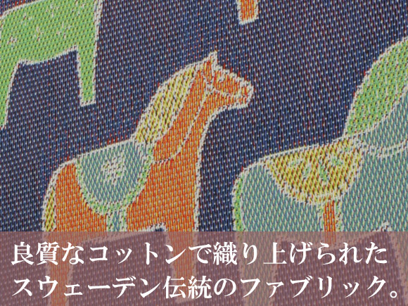 Virtuelli Design アンティークダーラナホースがデザインされたレトロな風合い。 エーケルンドは良質なコットンで織り上げられたスウェーデン伝統のファブリック。 タオルとして、タペストリーとしてお楽しみいただけます。 *** お手入れ方法 *** ネットに入れて洗濯機で洗えます。脱水後はすぐに形を整えて自然乾燥させて下さい。 コットン100%製品はタンブラー乾燥(ドラム式乾燥)も可能ですが、綺麗な状態を保つためにも自然乾燥をお勧めいたします。 漂白剤や蛍光漂白剤の入っていない洗剤の使用をお願い致します。 無漂白の自然素材の糸が持つ自然色は洗濯をするごとに徐々に薄くなります。 |