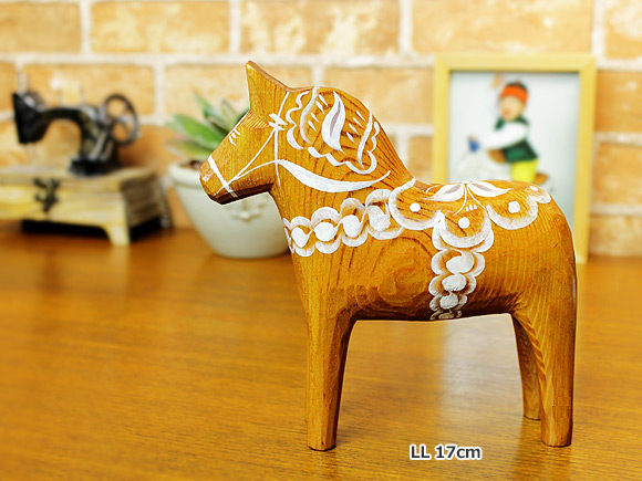 スウェーデンでは古くから馬は幸せを運んでくれるとされ親しまれています。 ダーラナホースの歴史や背景については同ページ内に記載がございますので是非ご覧ください。 ダーラナ地方で今もなお伝統を受け継いでいる老舗工房から、直輸入している作品をお届けいたします。 ダーラナホース ジンジャーブレッドは、2006年まで老舗メーカーのGrannas A Olssons Hemslojd AB社で作られており、アットテリアでも大変人気があったダーラナホースで、特別に作っていただいた復刻デザイン! スパイスやジンジャーを練りこんだスウェーデン伝統のお菓子 ジンジャーブレッド を、白いアイシングでデコレーションしたようなデザインのダーラナホース。 木目が透ける程度の透明感のあるブラウンで全体を塗装し、ホワイト系のペインティングでデコレーションされています。 香ばしいかおりがしてきそうな、素朴な風合いが魅力のダーラナホースです。 透明感のあるブラウンのため、インテリアの中に馴染みやすく目立たず調和します。 スウェーデンの伝統が可愛らしい姿で暮らしの中に溶け込み、ほっこりと温かな雰囲気を感じさせてくれます。 ホースを横から見たときのボディのリボンのような模様は、Sサイズ(高さ:10cm)以下では帯状に、Mサイズ(高さ:13cm)以上では波状に描かれることが多く、ダーラナホース特有の伝統的なデザイン。 模様の描き方、彫刻もそれぞれ個々に違った味わいがあるので、ダーラナホースは、同じものは二つとないと言われているところも魅力の一つです。 ダーラナホース ジンジャーブレッドは、模様やボディの色使いは統一されているため、配色については画像のようになります。 様々な飾り方を楽しめますが、SサイズとLサイズのようにサイズを2段階離すと親子馬のような雰囲気の可愛らしいディスプレに。 同じサイズで異なるカラーを並べたり、お顔を向かい合わせにしたり、お手持ちの小物と合わせることで季節やインテリアとの調和を工夫しながら自分流のアレンジが楽しめます。 |